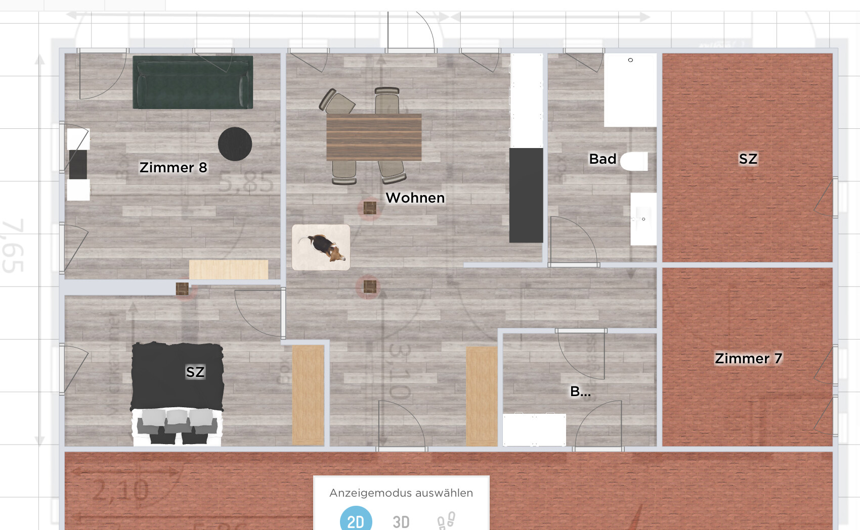 Aber auch die Visualisierung ist wie die Maß-2D-Planung anders. In #34 auch in korrigierter Form. Schlechte Variablen für uns Mitdenkende 🙁Die Maße welche im Grundriss im ersten Post eingezeichnet sind habe ich aus den Maklerunterlagen und vor Ort nochmal abgeglichen.