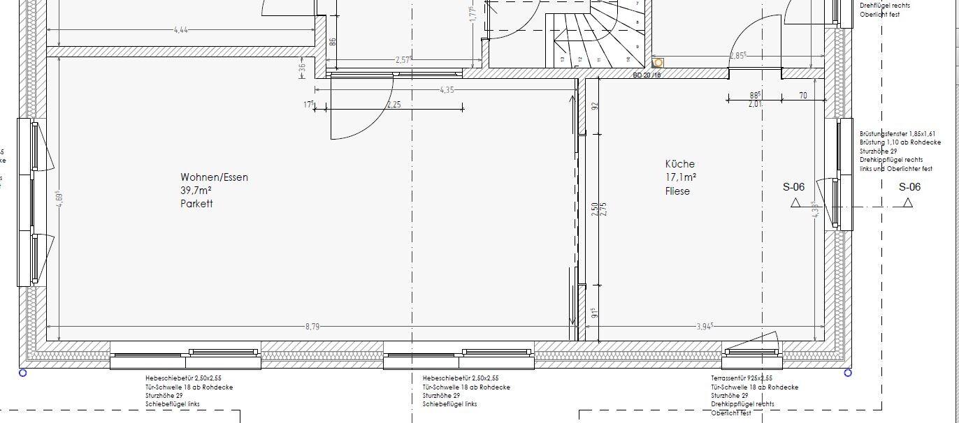So eine L-Form haben wir auch. Man kann also vom Wohnzimmer auch nicht in die Küche schauen. Wir haben auch einen Durchbruch zwischen Küche und Esszimmer/Wohnzimmer geplant, wo eine Schiebetür hinkommen soll.