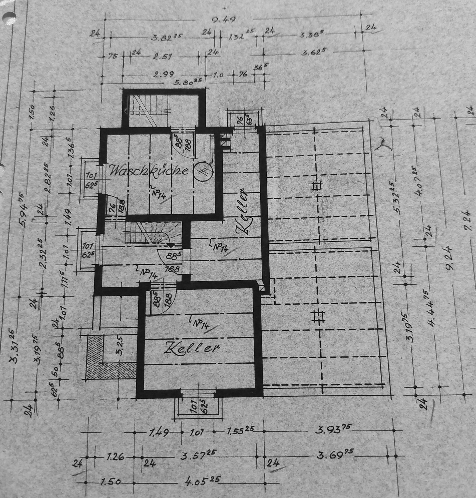 Baubeschreibung halte ich auch für sinnvoll?!Eine in der mehr geändert als vorgedruckt ist und die wesentlich den Zeichnungen widerspricht eher nicht. Ich glaube hier eher den Plänen. Mit Bauakte meinte ich übrigens die beim Bauamt, nicht den Familienalbum-Leitzordner zum Haus. In der offiziellen Bauakte wäre eine Baubeschreibung eher unüblich, insbesondere in der hier vorliegenden Form. Ungewöhnlich für die damalige Zeit ist, daß sich der Architekt offenbar schon penibel in das neue Steinformat eingefuchst hatte. Gespart wurde hier wohl hauptsächlich durch die Einliegerwohnung, den Teilkeller, Außenwände, Dachkonstruktion und dergleichen - aber nicht mehr wie üblicher bei den nichttragenden Innenwänden. Auch wurden den Fensterlaibungen Anschläge gegönnt, und sogar ein Blumenfenster gibt es. Waren die (Schwieger)eltern der Witwe die Erbauer ?schubert79 schrieb: