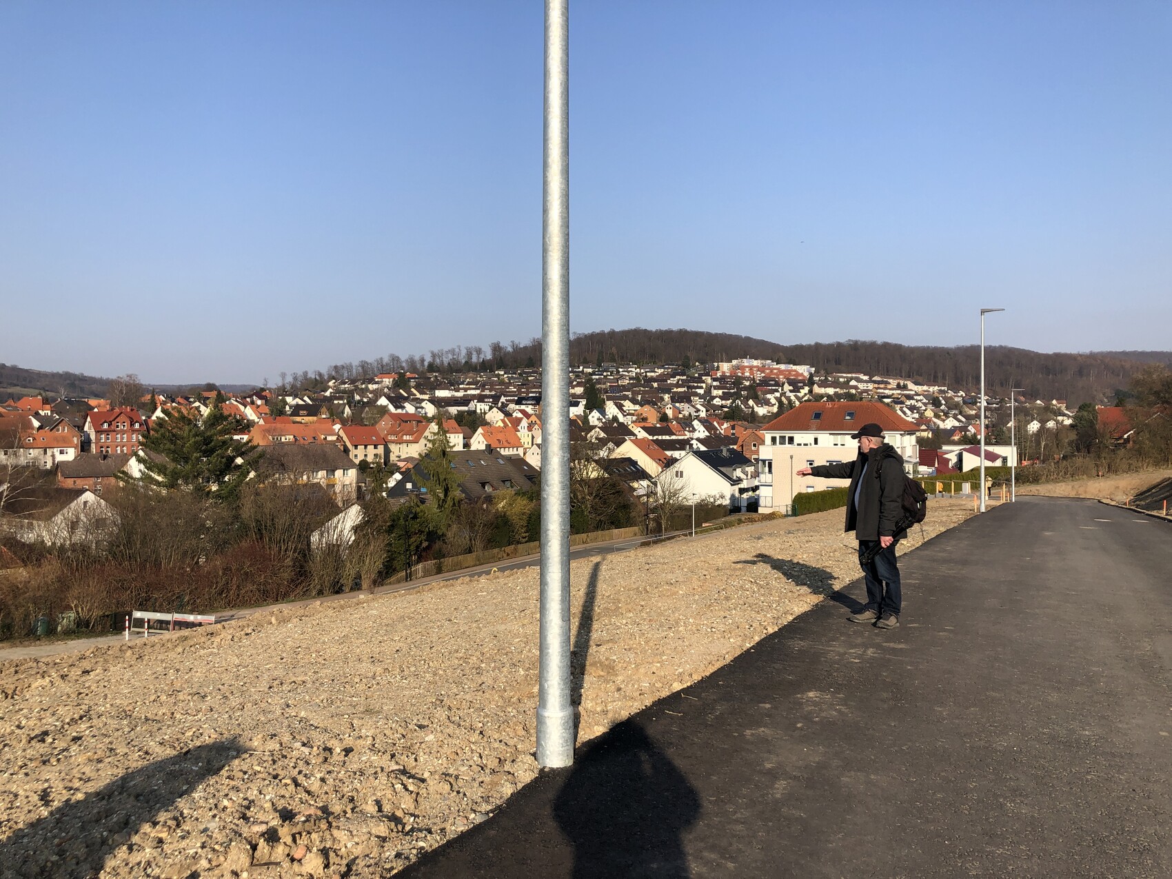 Wo soll die Garage oder Stellplatz hin?Danke . Das Haus wird mit dem Stellplatz an die Ostgrenze gesetzt (dort unten ist dann ja auch der Abwasserschacht). Außerdem sind die Grundstücke auf der gegenüberliegenden Straßenseite etwas versetzt gelegen, so dass wir dann trotz Nordhang zumindest nicht allzu viel Mittagsschatten haben- die größeren Fenster sollen final so gesetzt werden, dass sie gegenüber der 6m - Lücke zwischen den gegenüberliegenden Häusern liegen.