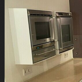 Ich könne mir aber auch vorstellen (um den Küchenplatz zu vergrößern) z.B. den Backofen in der Hauswirtschaftsraum Wand halb zu versenken ungefähr so: