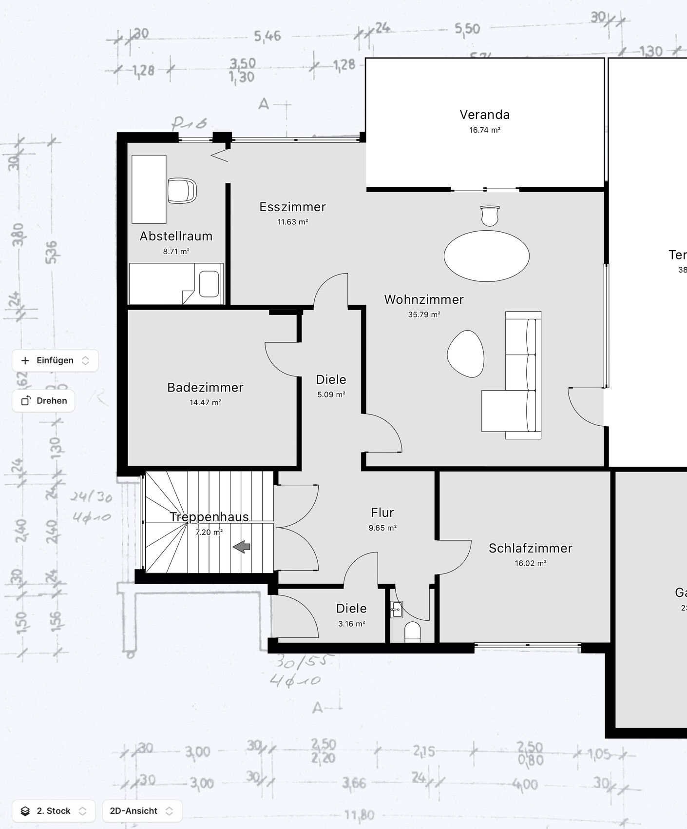 Ich möchte gerne in das EG gehen und mein Vater (naher Verwandter) in das 1. OG. Das Dachgeschoss soll aktuell wegen der Kosten und nicht vorhandenen Notwendigkeit unausgebaut bleiben.