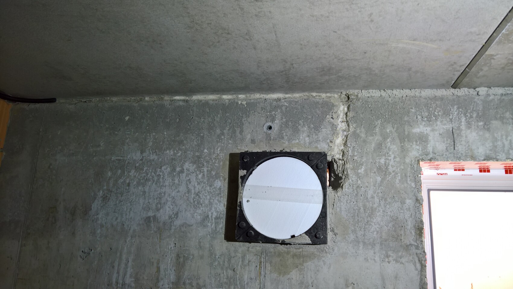 Die Lüfter waren für mich bisher, vor dem Gespräch mit dem Bauherren-Schutzbund bislang noch gar nicht auf dem Radar, da ich davon ausging, dass man die Lüfterkästen inkl. Stromzufuhr eingegossen hatte.... dem ist nicht der Fall, es wurden ausschließlich die Kästen der Lüfter eingegossen. Bei einer Begehung heute zeigte sich dann folgendes: