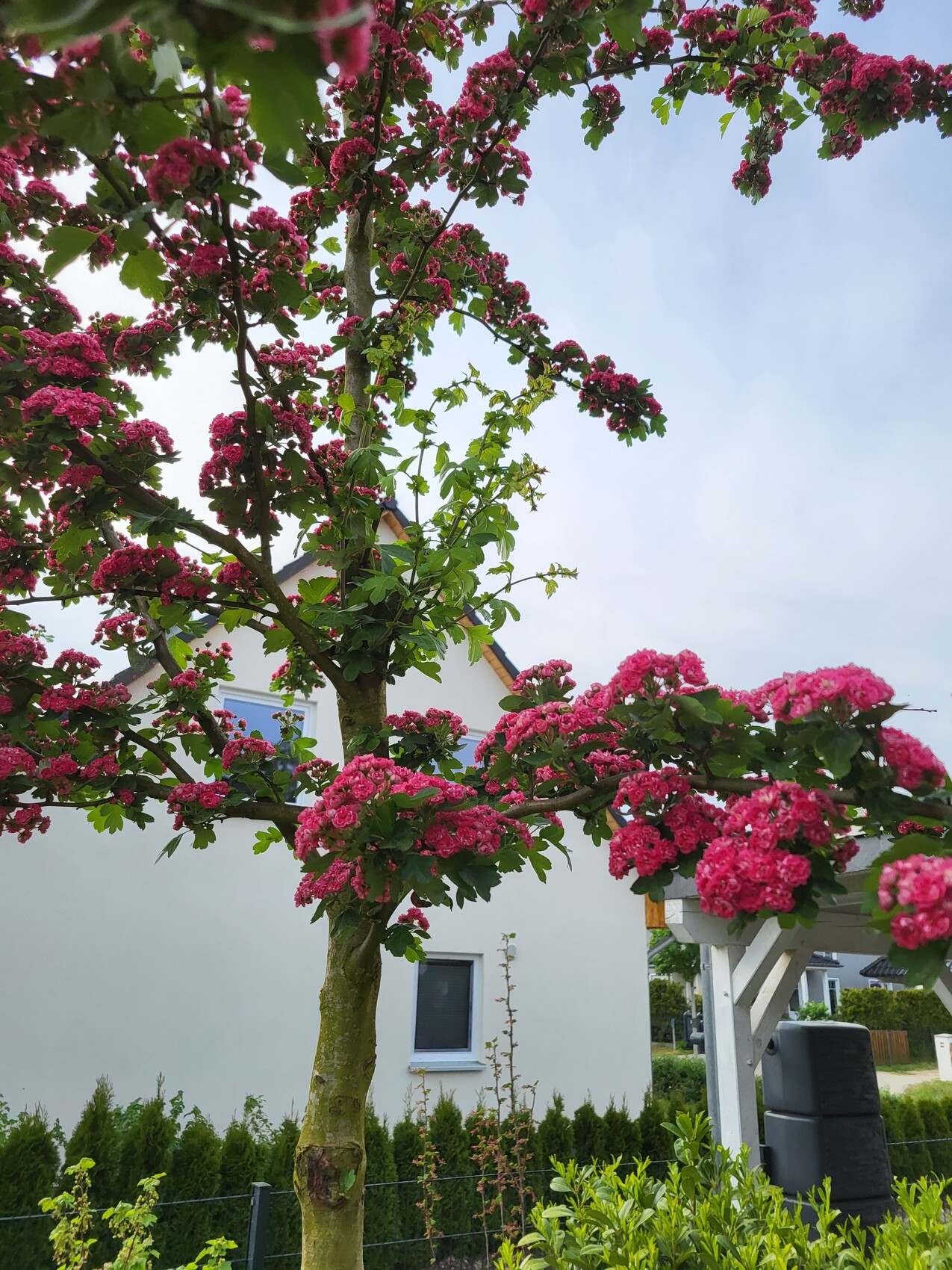 bei uns stehen seit ca. 2,5 Jahren ein Rotdorn und Weißdorn. Die Pfähle der Sturmsicherung vom Rotdorn musste ich kürzlich entfernen (verfault).
