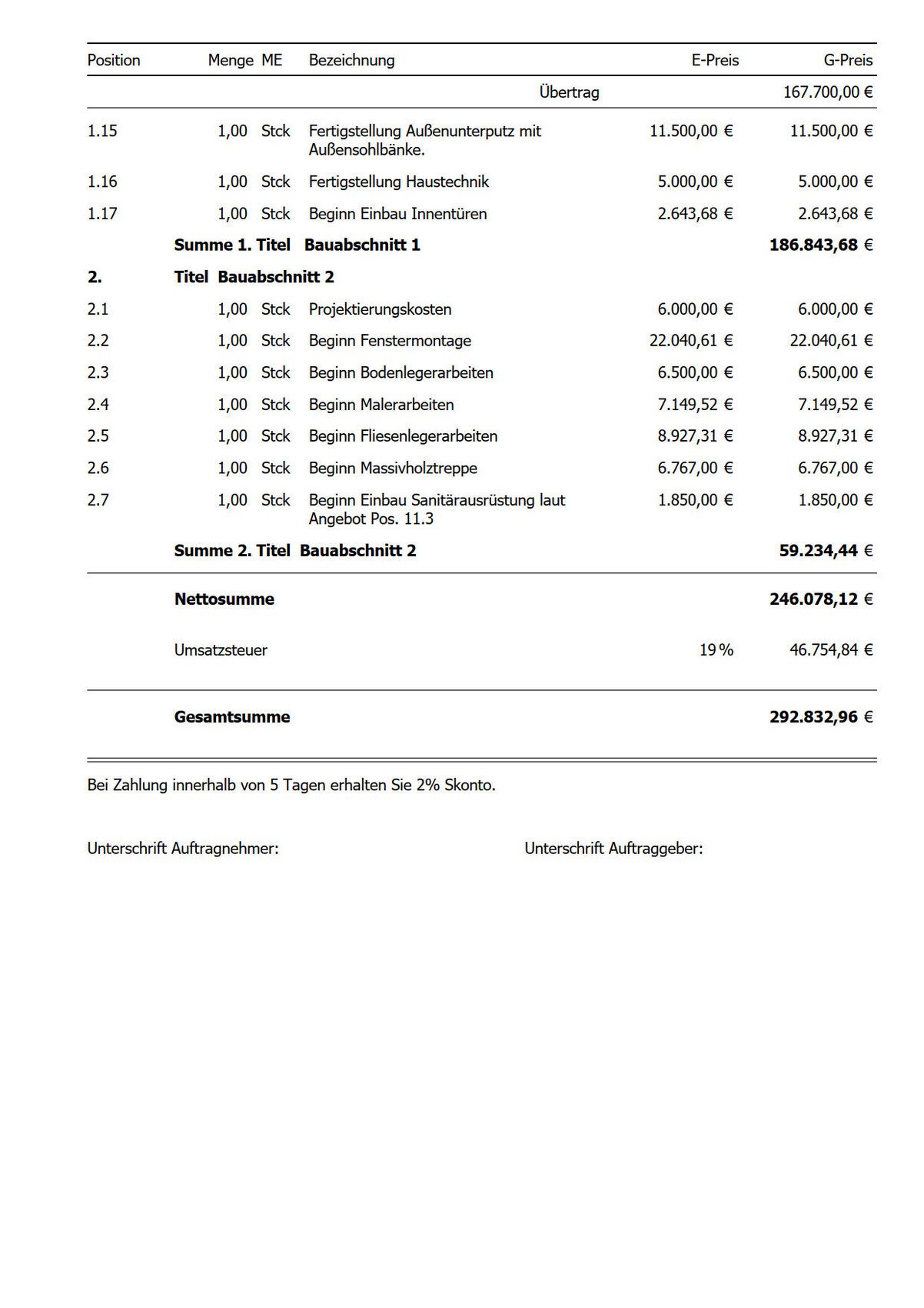 daniel1985ffo19.03.20 10:40folgenden Positionen nicht beachten. Da beauftrage ich die Gewerke selber und mache zum Teil Eigenleistung.