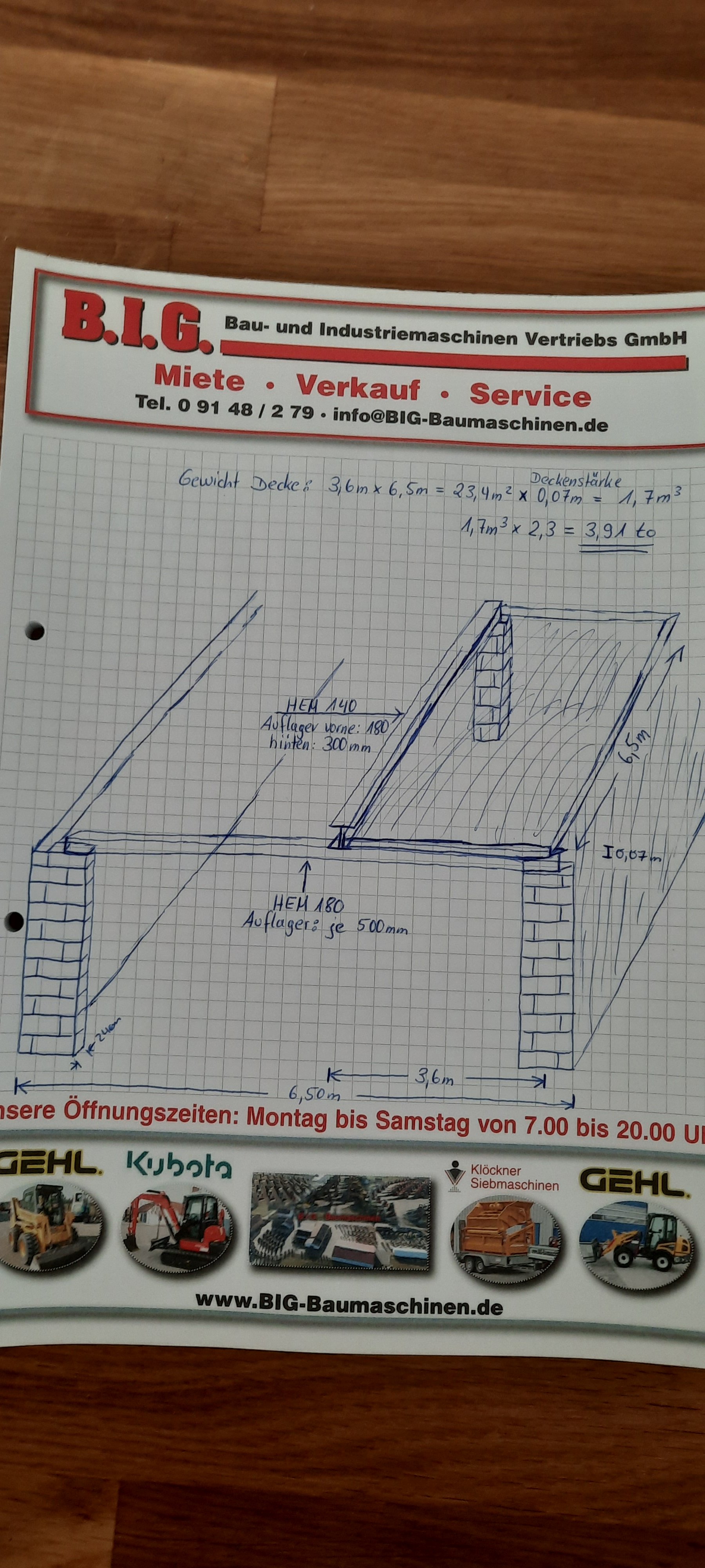 Die betondecke liegt aus Platzgründen der garagenhöhe in dem HEM 140 träger.