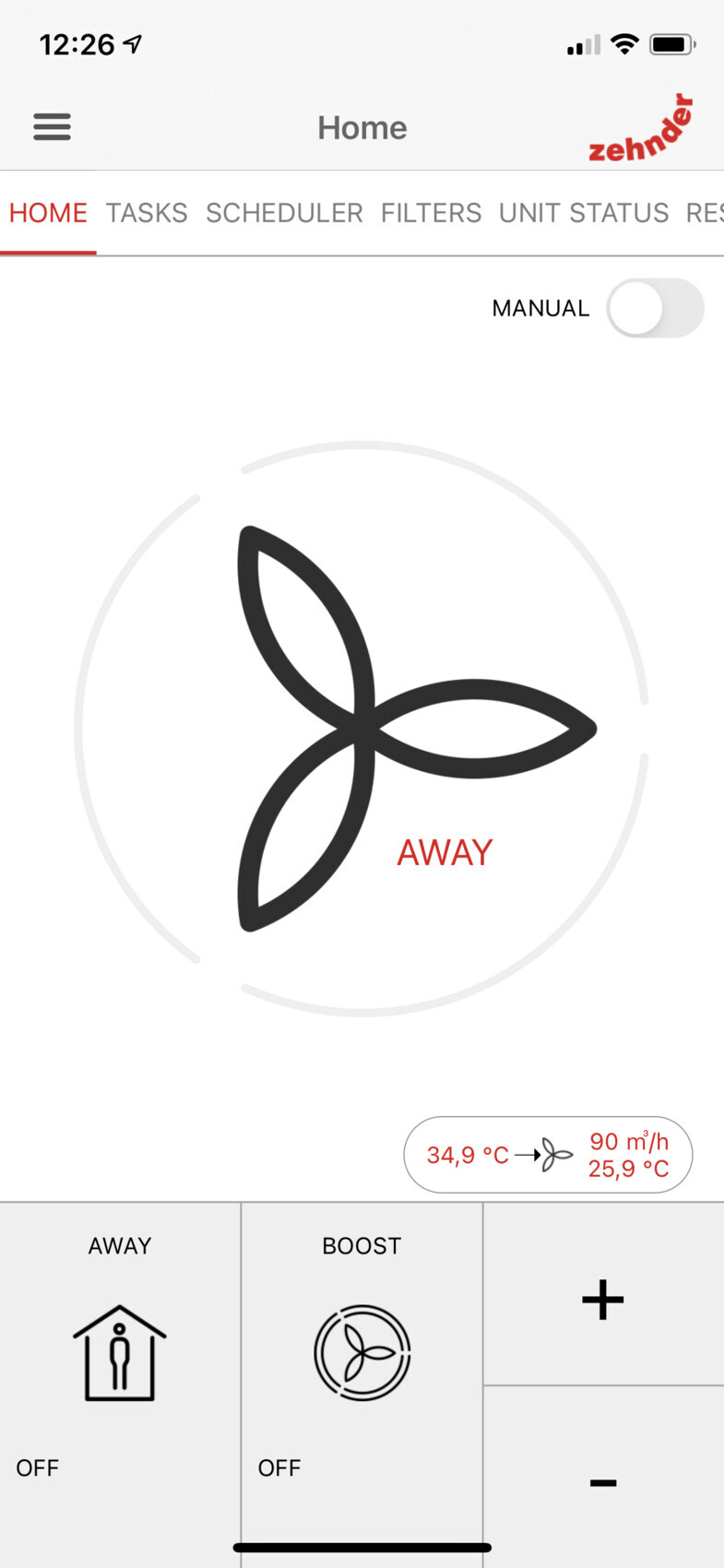 Nachts lasse ich dann auf "Boost" und nur Abluft laufen sowie in allen Schlafräumen mit gekippten Fenstern, um die kalte Luft von außen bestmöglich einzusaugen.