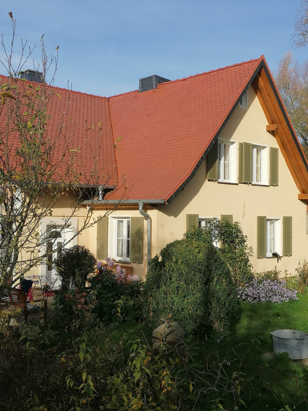 Eigentlich wollte ich auch einen weißen Dachstuhl, aber da hält die Farbe längst nicht so lang. Die von mir gewählte Farbe ist nun schon 14 Jahre ohne Probleme am Dachstuhl.