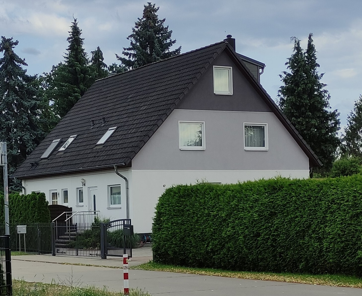 Ich bin auf keine Leiter geklettert und das gelbe und rüne Haus, die nebeneinander stehen und die ich eigentlich unbedingt photografieren wollte habe ich weggelassen, da dort gerade eine Gartenparty stattfand und es mir dann doch zu dreist vorkam die zu bitten die tische wegzuräumen, damit ich die Fassade richtig draufkriege... 😀