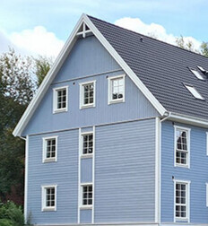 Mir gefällt ja taubenblau/-grau sehr gut zu weißen (Sprossen-)fenstern. So wird evtl. unser Haus beim nächsten Anstrich.