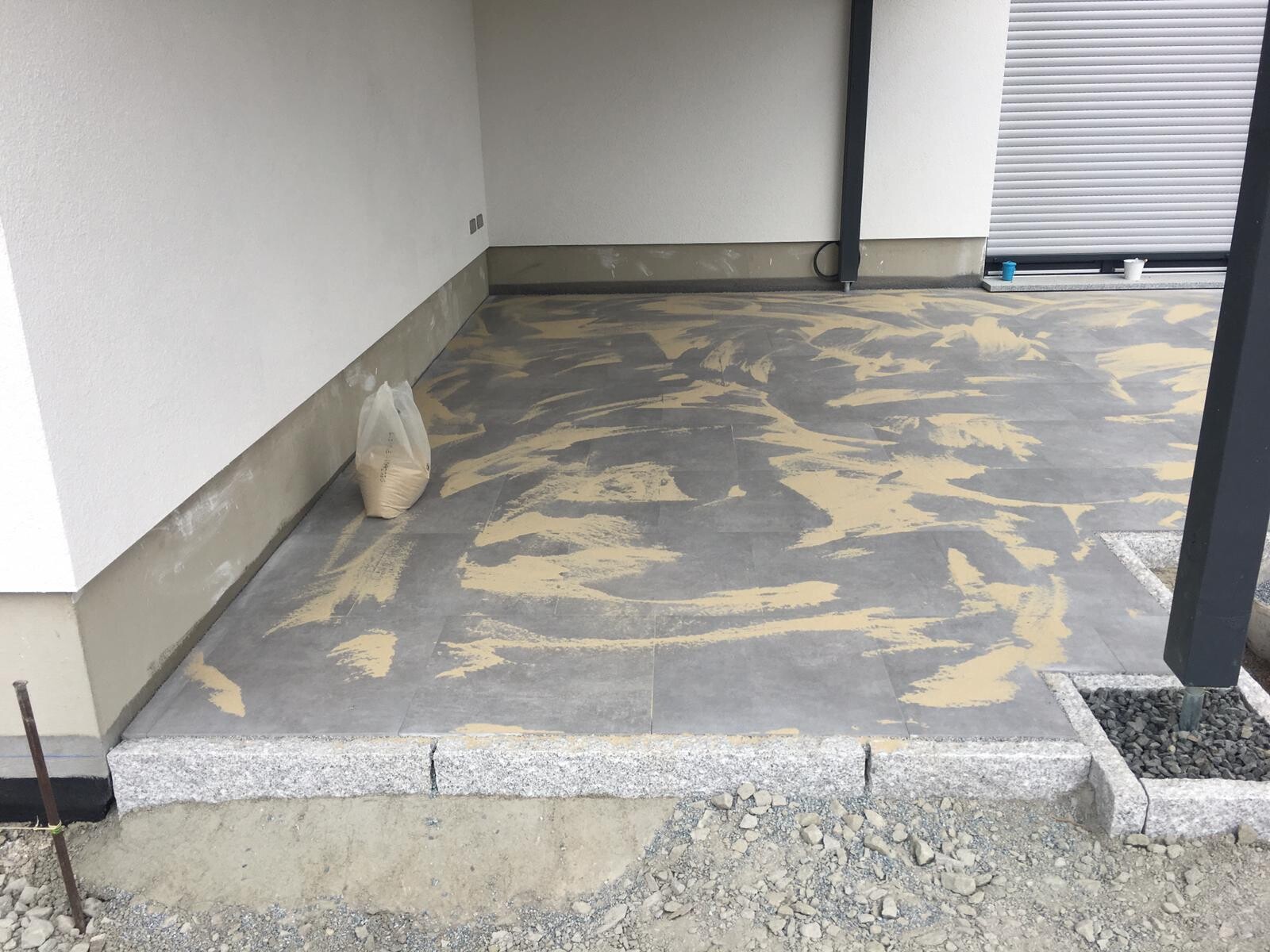 Fliesen außen auf Knirsch ins Splitbett zu setzen und hinterher einzufegen, hab ich auch noch nicht gesehen Aber was solls, schön ist es ja geworden.