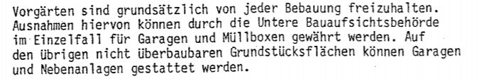 Garage/Carport nah ans Straßenniveau zu setzen würde das Winter-Risiko sicher entschärfen. andererseits wollen wir es auch nah ans Haus für Einkäufe, Regen usw. Daher wäre es bestimmt sinnvoll das Haus nicht ganz an den Rand des nördlichen Baufensters zu setzen? Mir fiel noch folgendes im Bebauungsplan auf. Heißt wohl, im worst case müsste der Stellplatz etwas zurückgesetzt werden, falls nicht anders genehmigt wird.