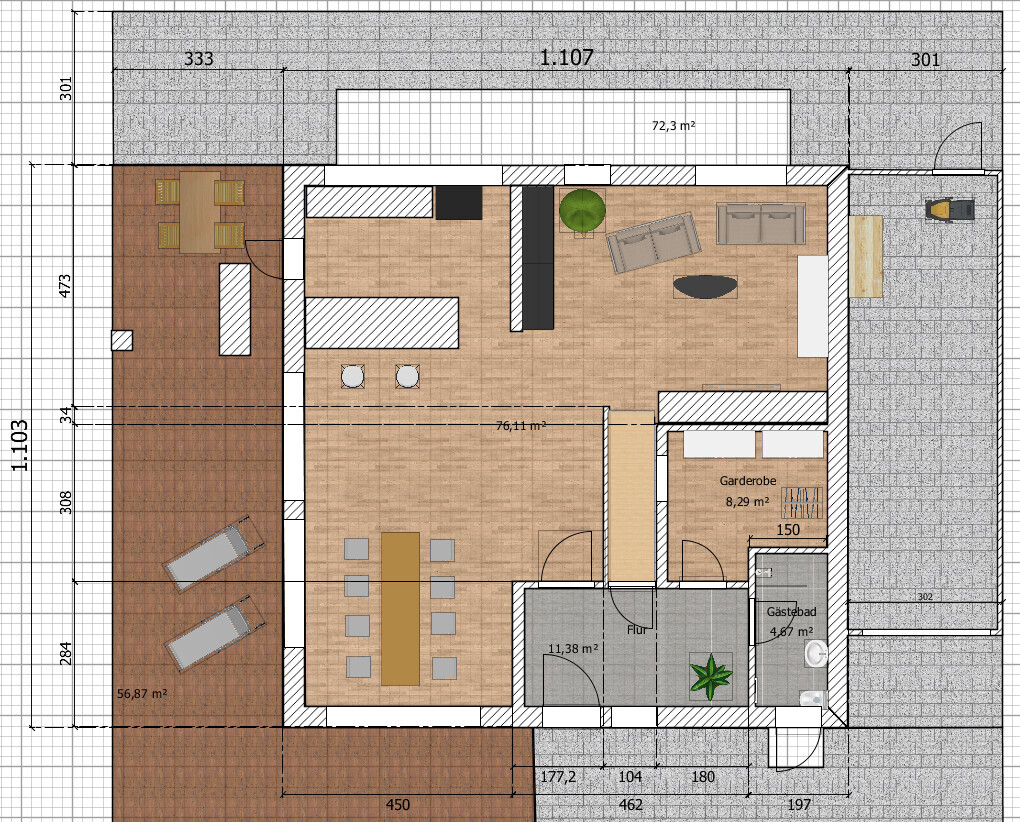 budha_bau06.12.20 10:06Super, danke schon einmal für den guten Input. Wir leben auch heute schon recht "üppig", vielleicht sind wir etwas zu verwöhnt was Großzügigkeiten im Wohnbereich angeht. Das kann natürlich sein. Der Plan ist aber nur auf unserem Mist gewachsen, eine Vorlage hatten wir eigentlich nicht.