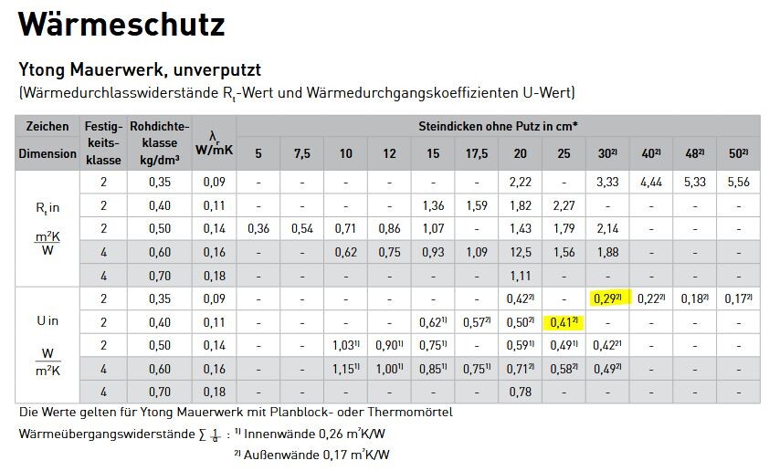 Sonst ist es mit der Wandstärke immer ein schwieriges Thema. Zeitgemäß ist eigentlich ein U-Wert unter 0,2, eher niedriger. Bei einer 24er Wand mit Dämmputz ist man eher bei 0,3.