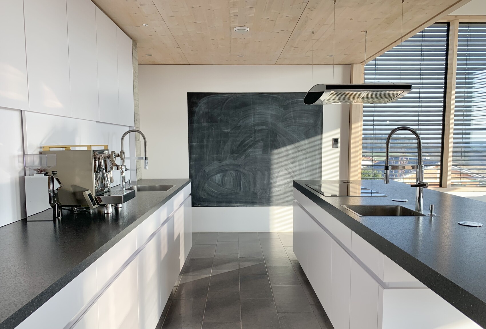 Und dann ist da ja auch noch die Terrassentür, daher fand ich die Mitte für das Kochfeld ganz gut.