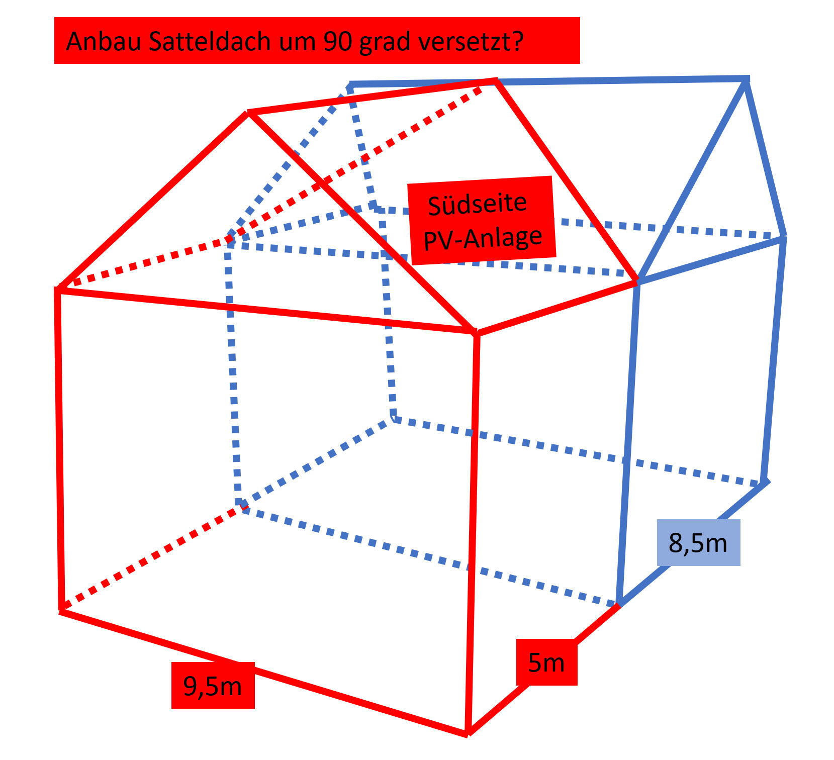 扩建部分的屋脊将斜向从扩建部分延伸到老建筑中部。