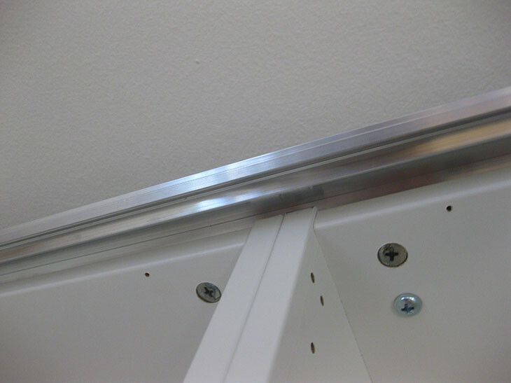 这个柜体制造商已经预留了四个孔,我用下面图片中带卡扣的螺丝固定了轨道。我没有把螺丝完全拧紧,以便轨道还能放进卡扣下面。
