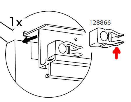 我注意到止动器(见第6页128866,在内侧)没有搭扣,因此门可以比原装止动器推得更远。