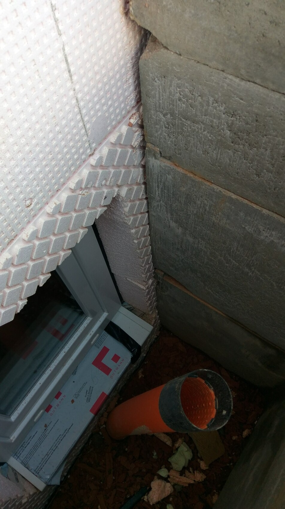 上部区域没有与房屋墙壁齐平。下部区域已经压到了隔热层。