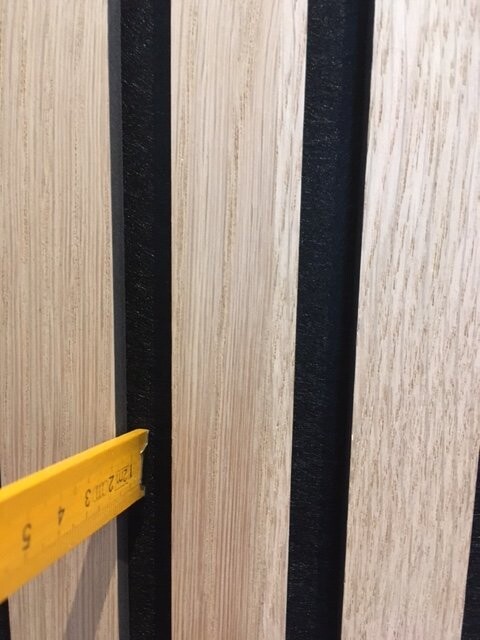 所以我在推拉门上安装了声学面板。类似于“Lino”元件:一块铺有毛毡的垫子,上面是填充有毛毡的木条。我去木匠那里看了一个样品,我很喜欢。