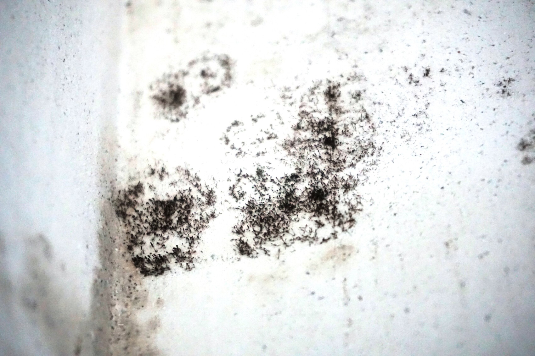 我觉得,霉斑是直接长在混凝土上的(见第三张图片)。