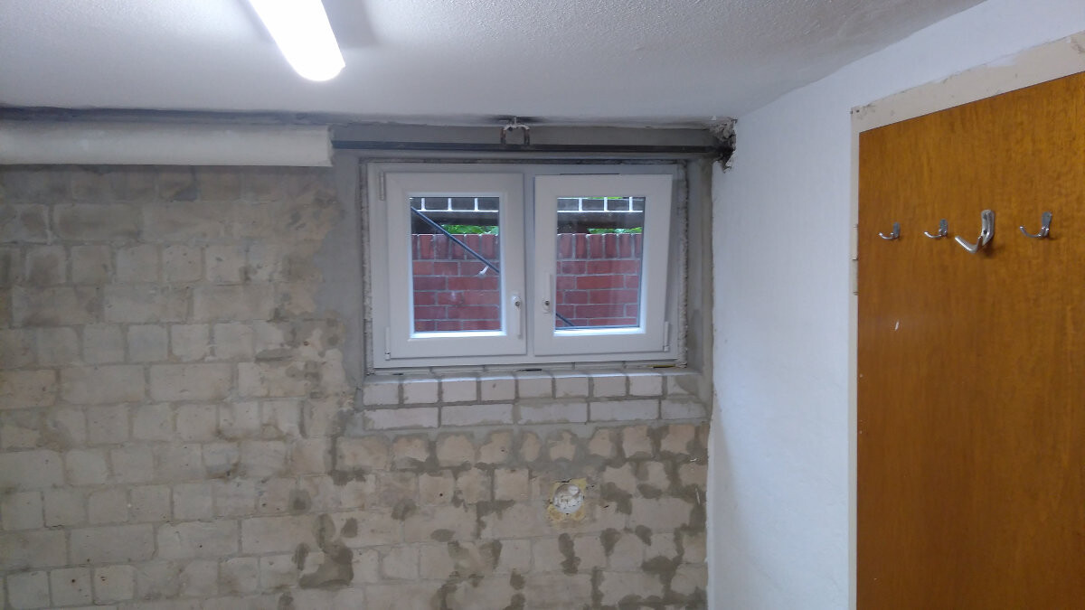 洗衣房的窗户问题更多。尽管我们在拆除内侧木窗后警告了窗户制造商,他提供的窗户这样安装是行不通的,但他还是不愿意在安装前过来现场查看并共同寻找解决方案。