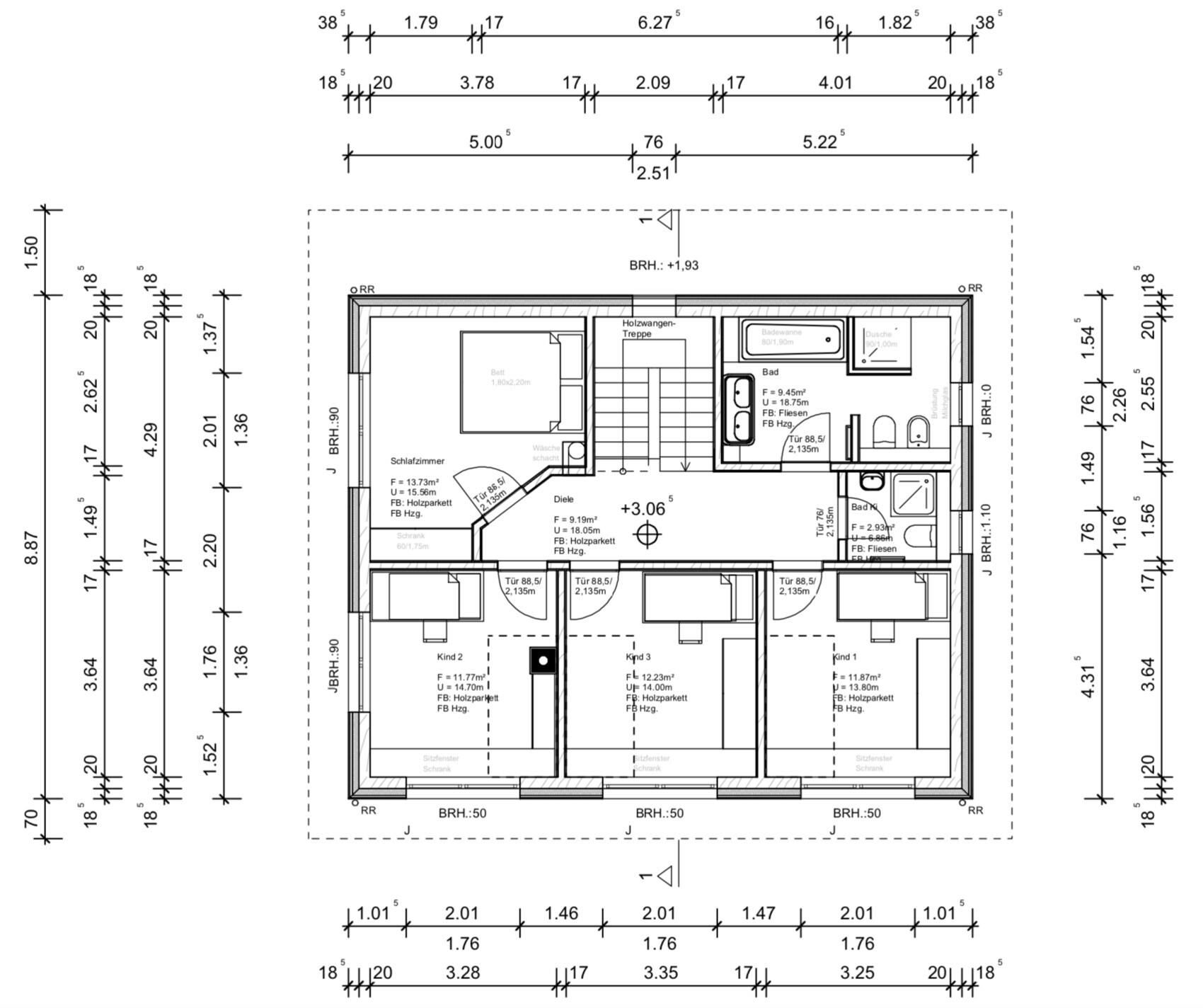 我们家里将有五个人一起生活。由于我们有很大的朋友圈,并且要从城市搬到乡下,我希望我们的朋友们能够经常来访,因此我们设计了一个带浴室(淋浴,卫生间)的客房。以后如果有父母一方单独留下并希望和我们一起生活,这个房间也可以用作护理房。