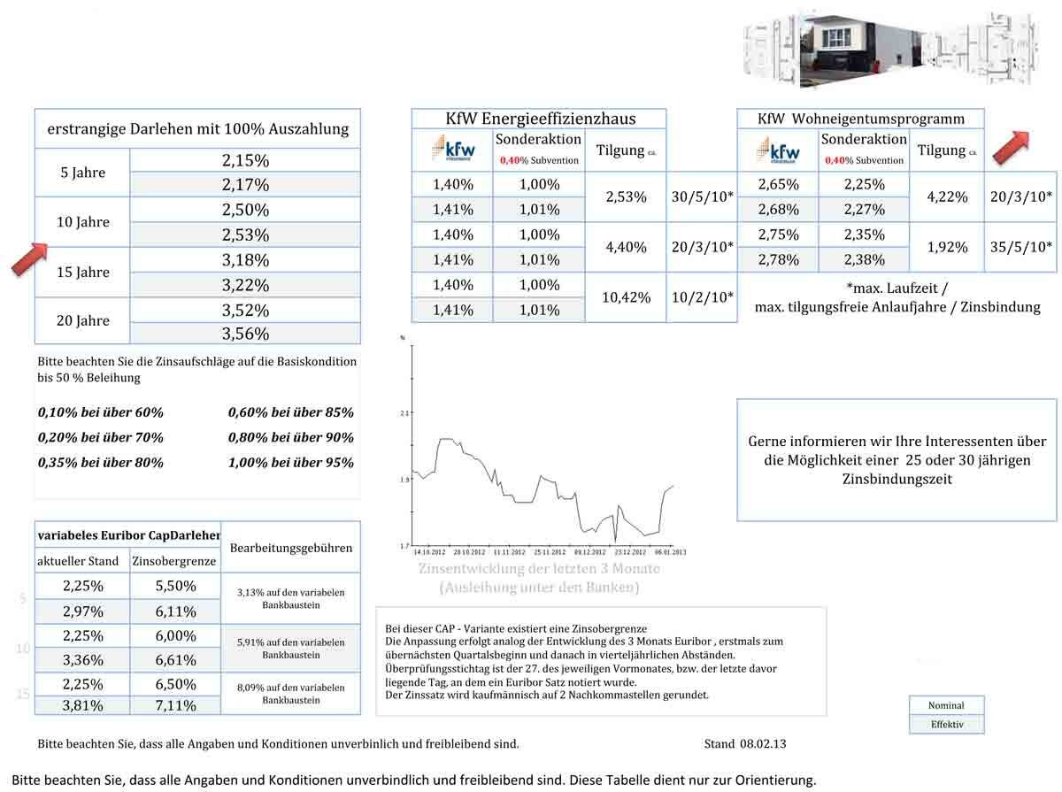 TTrinkmessias 2013-02-10 18:33:58#2早上好。我们正在等待社区对一个新建住宅区内的小型自有土地的批准,现在开始为一座小型KFW70单户住宅进行融资规划。需要你们的帮助:我在哪里能在网上找到一个包含KFW补贴的最新且简单的建筑融资计算器?你们会推荐哪个,或者我最好向哪里咨询?