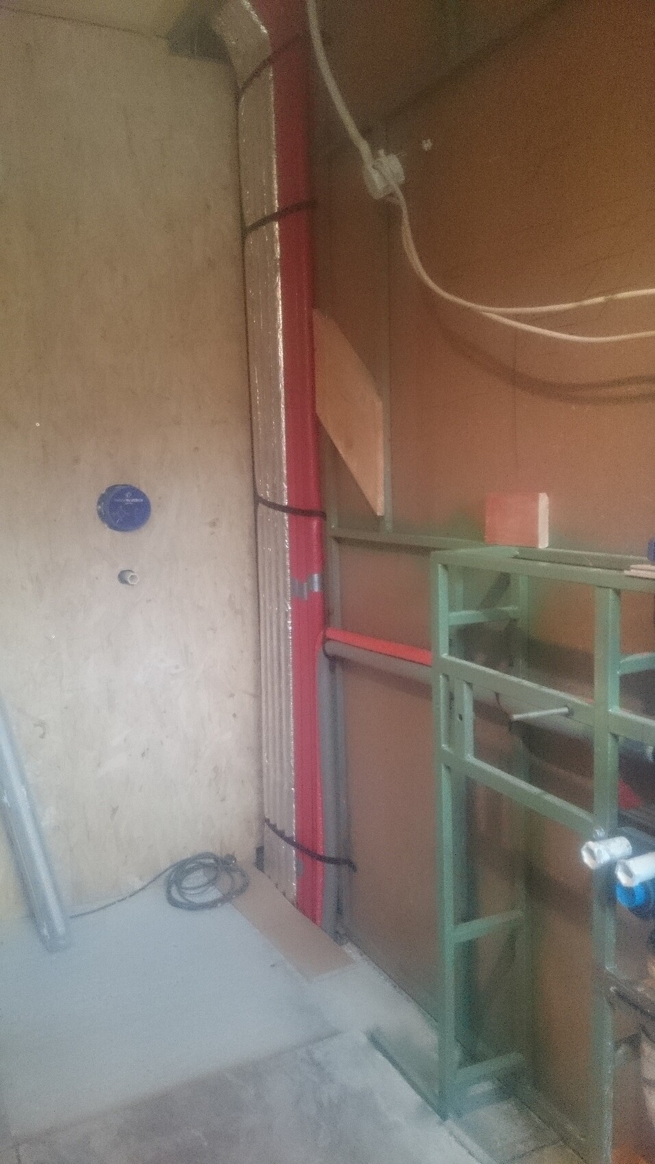 这里有第一个问题:是否需要防潮层?背后是一个地窖上下通道(未供暖),以及通往上层楼的上下通道(未装修)。
