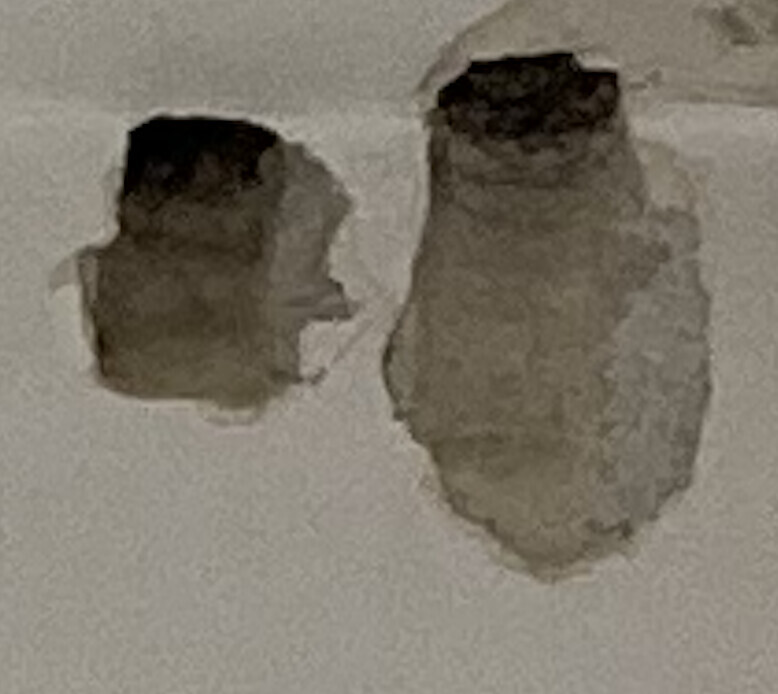 我在改建工程中让人钻了一个孔在天花板上,以便穿过一根带有电缆套管的电缆。孔径是40毫米。(siehe beiliegendes Bild)