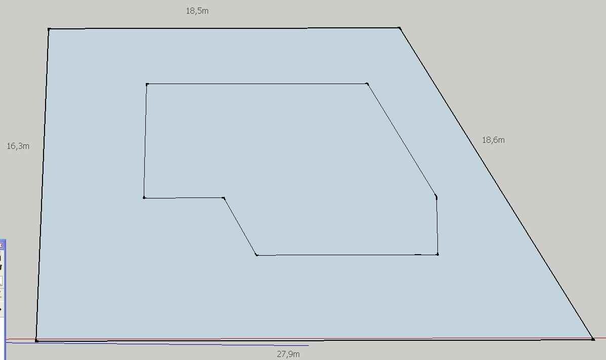 现在可以简单地将地块变成长方形,通过去掉右下角的那一块,然后在那里建停车场和种树。面积甚至会更大。地块因此会略小,但深度减少6米。